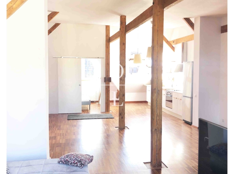 Mieszkanie znajduję się ostatnim piętrze kamienicy i ma ogromną powierzchnię 91 m2