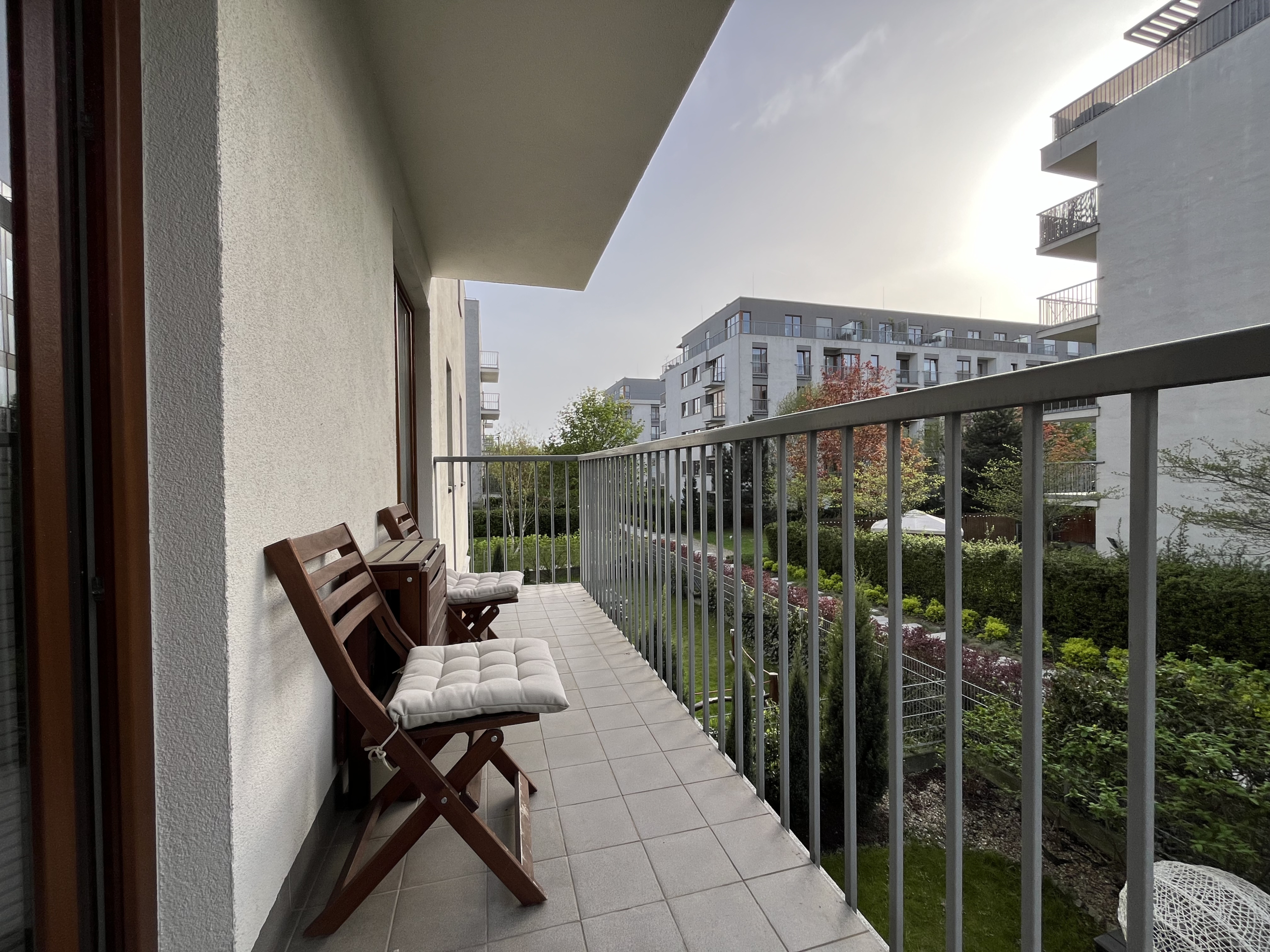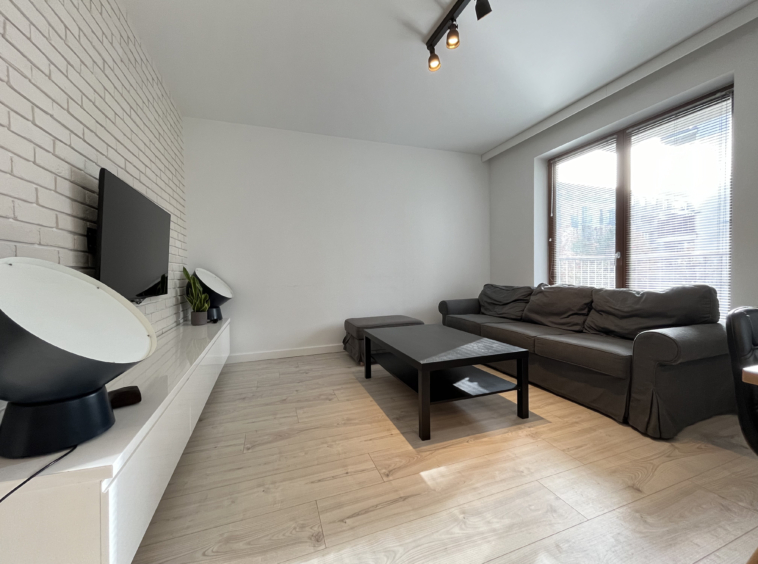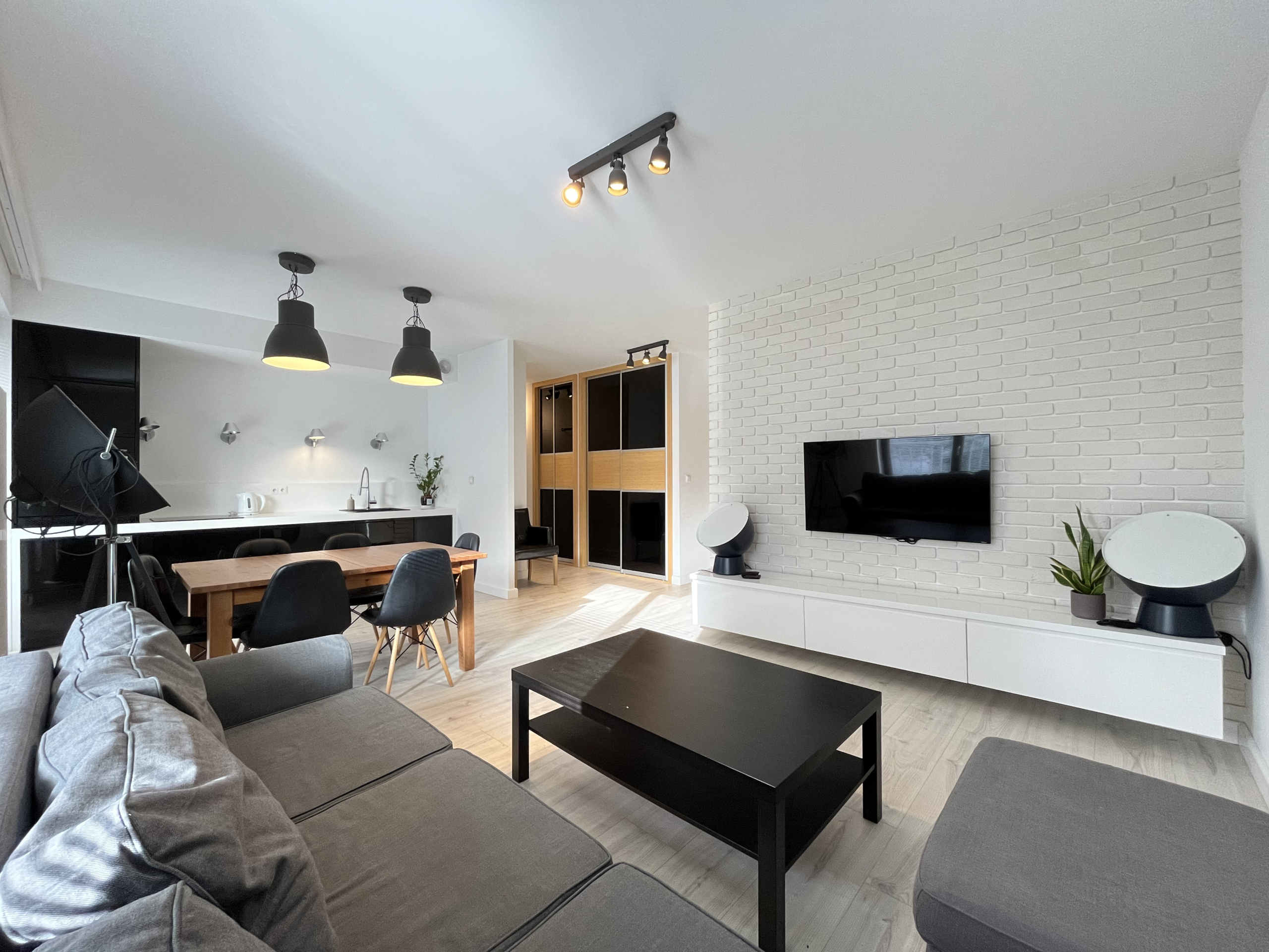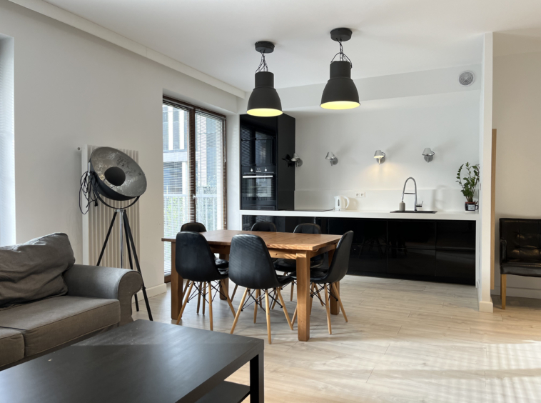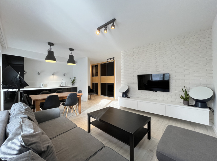 - Przemyślanym rozkładem: przestronny salon połączony z nowoczesną, otwartą kuchnią, z którego prowadzą aż dwa wyjścia na balkon – miejsce, gdzie można zrelaksować się przy porannej kawie czy wieczornym wypoczynku.