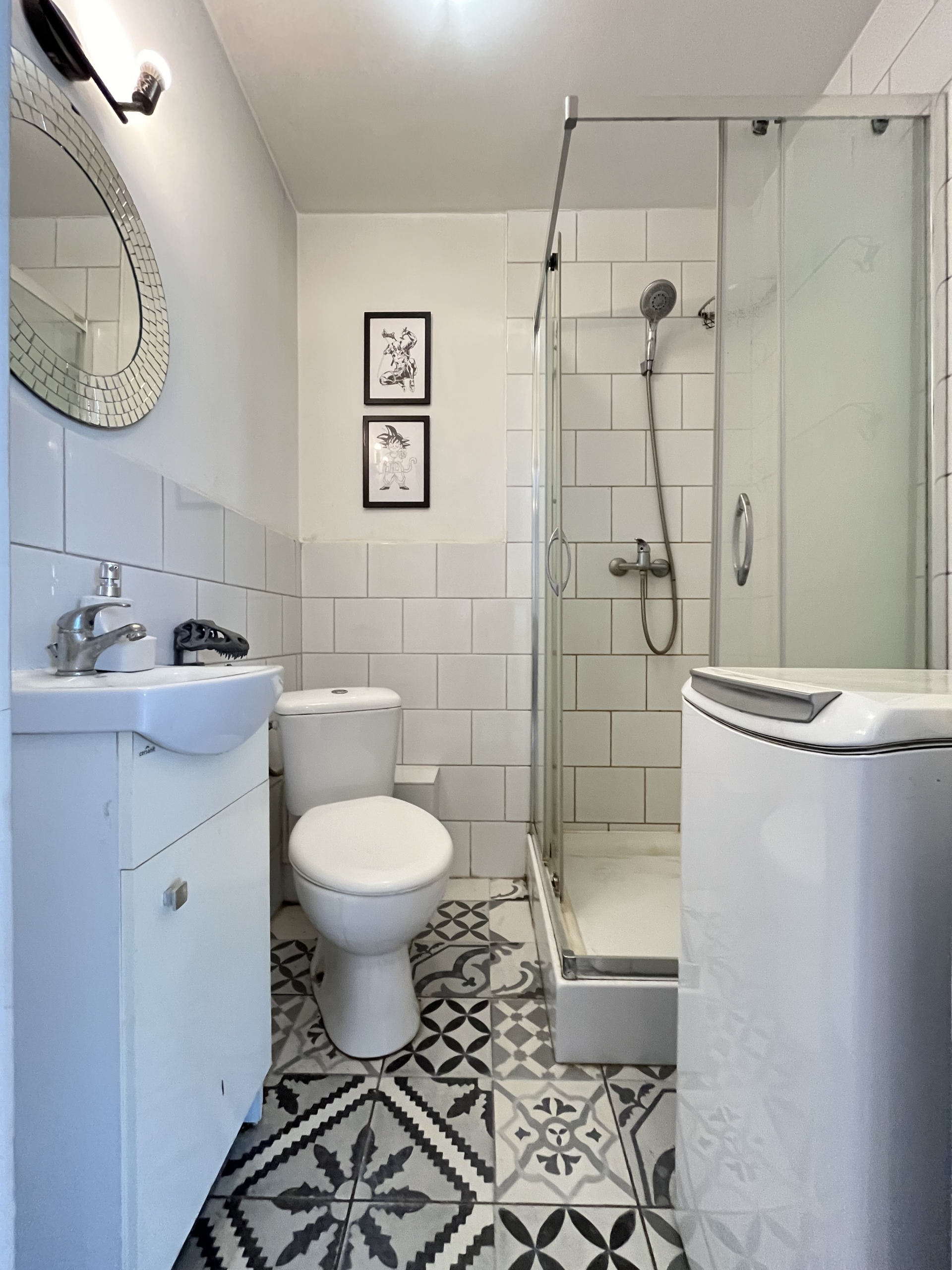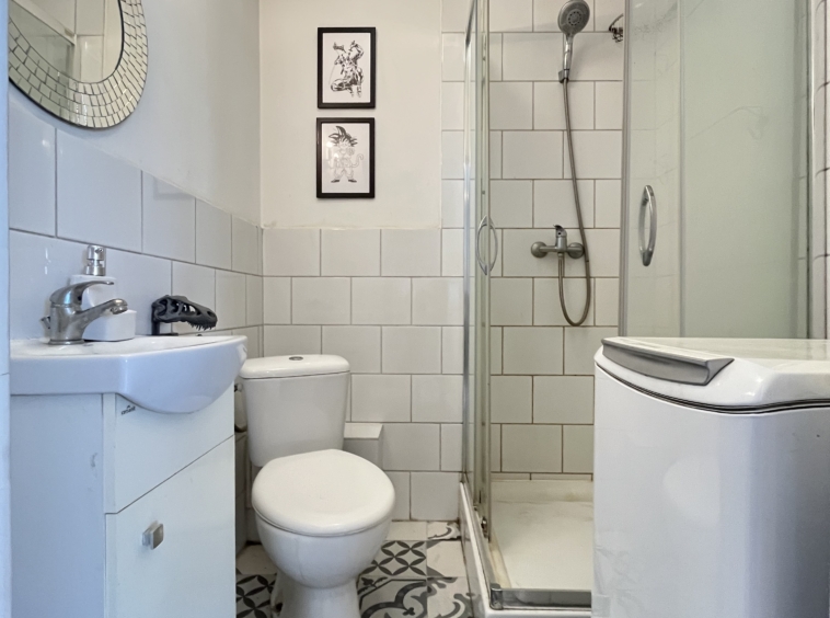 Łazienka jest po remoncie, zostały położone płytki, wymieniona kabina prysznicową, jak i wszystkie instalacje. Na podłodze w całym mieszkaniu również są płytki.