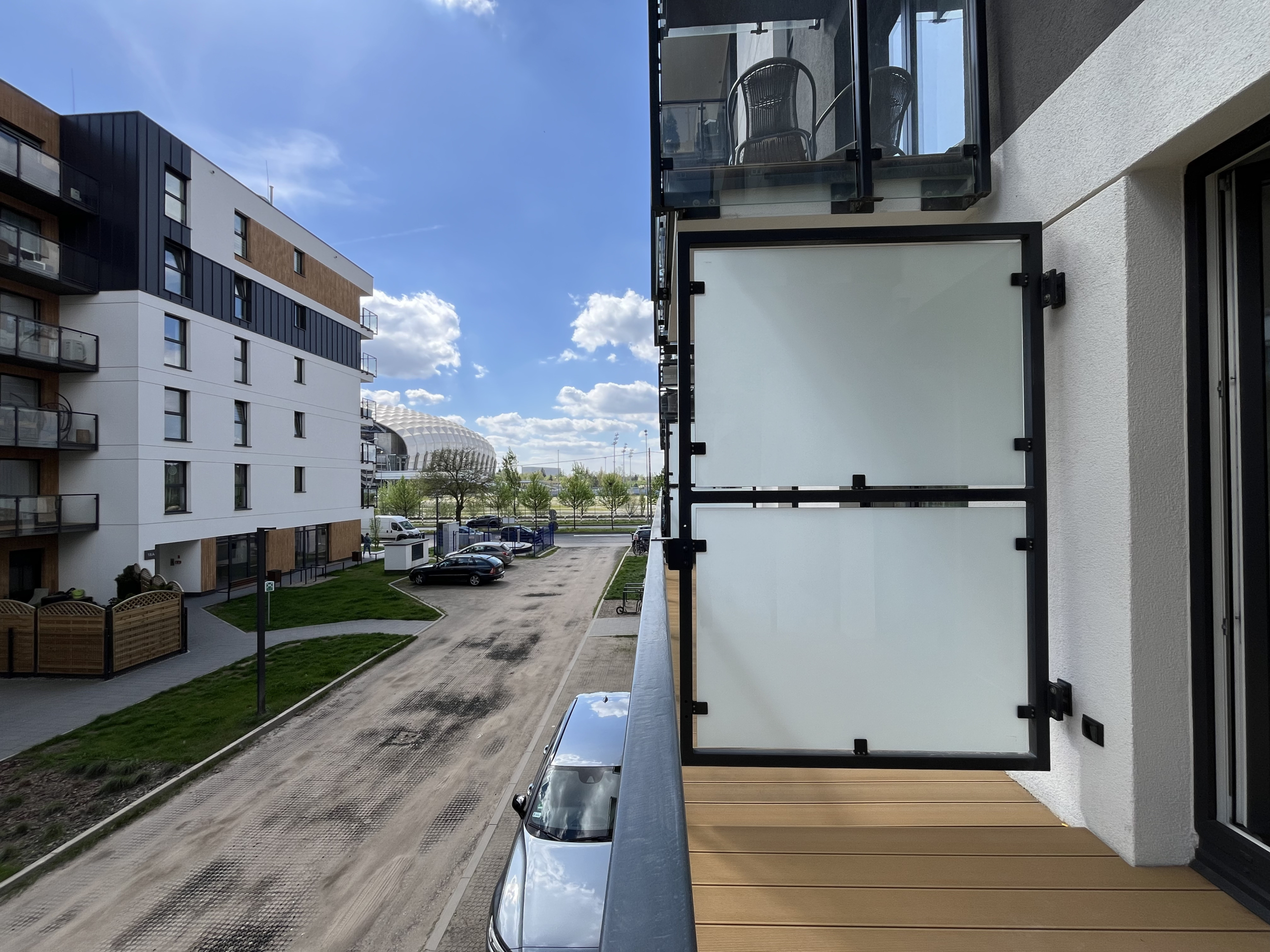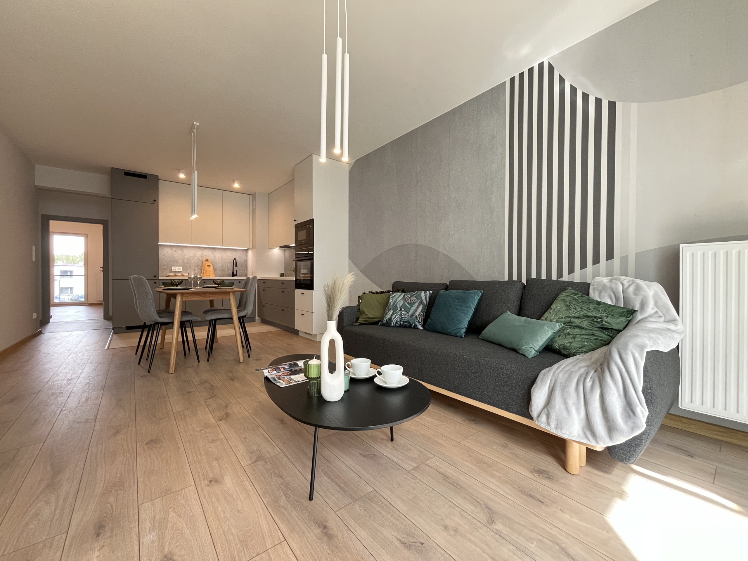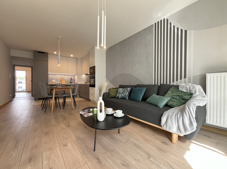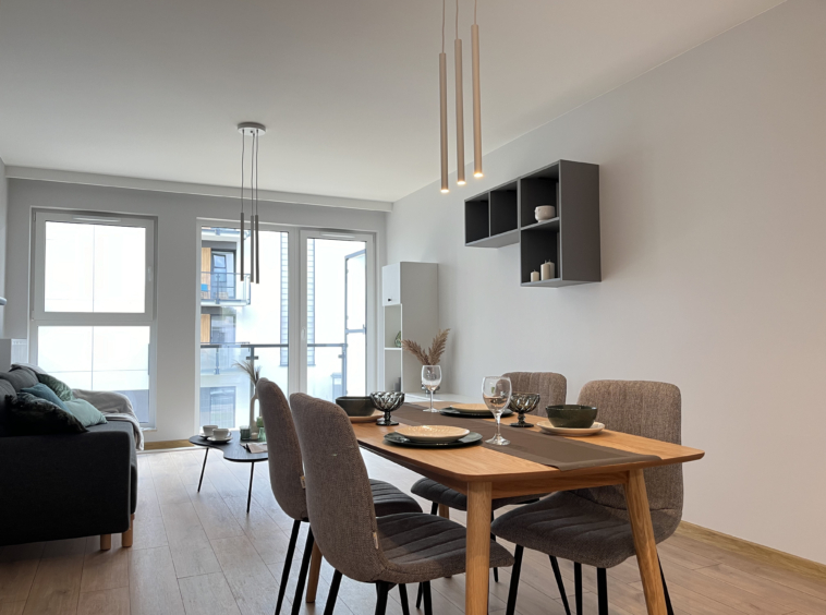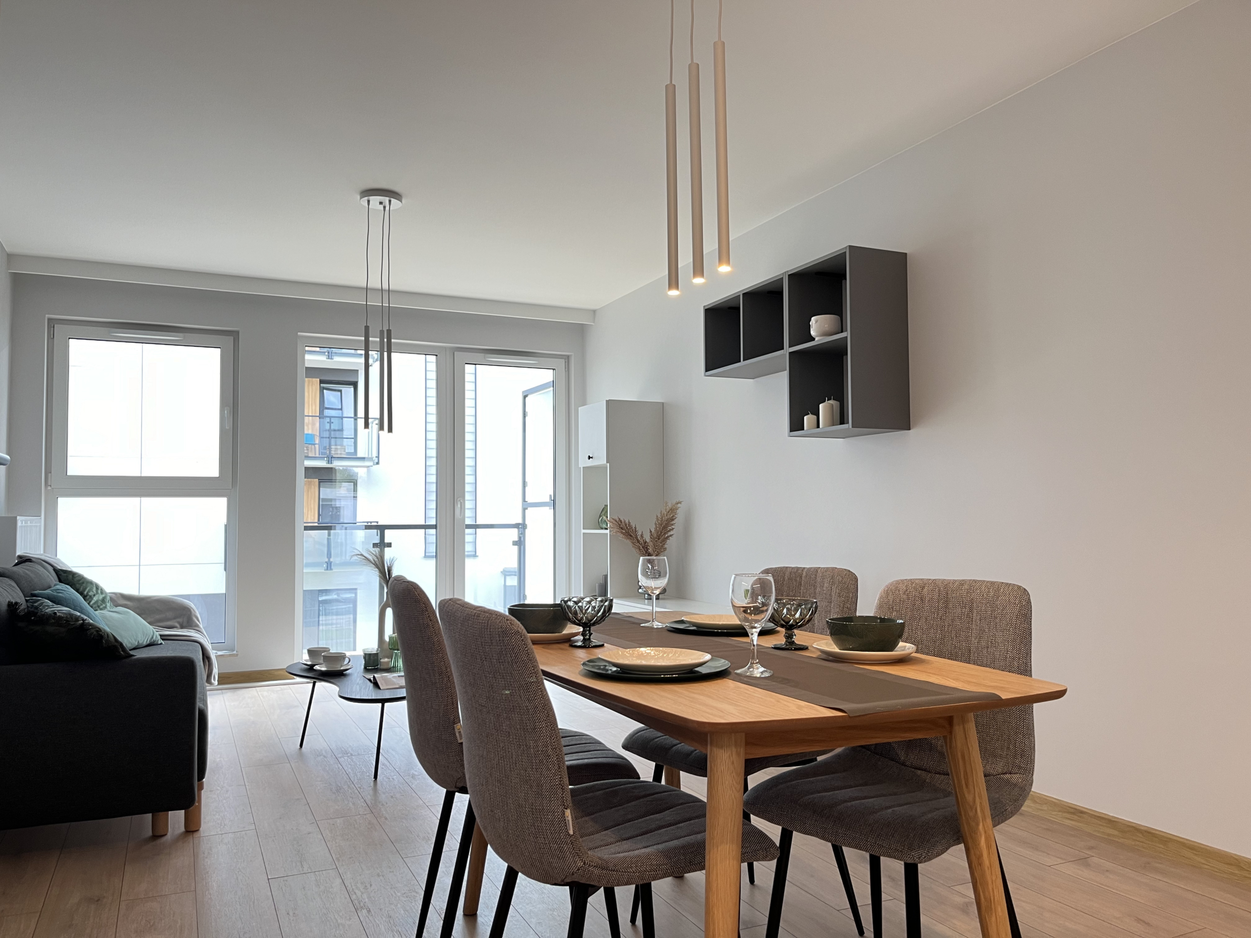 • Przestronny salon z wyjściem na balkon, idealny do relaksu po całym dniu;
