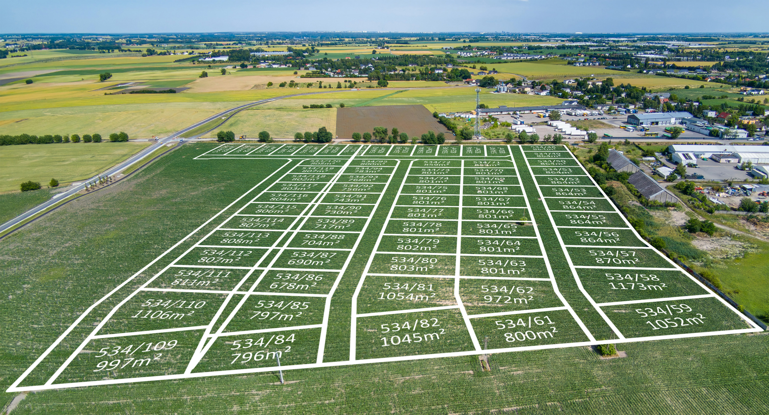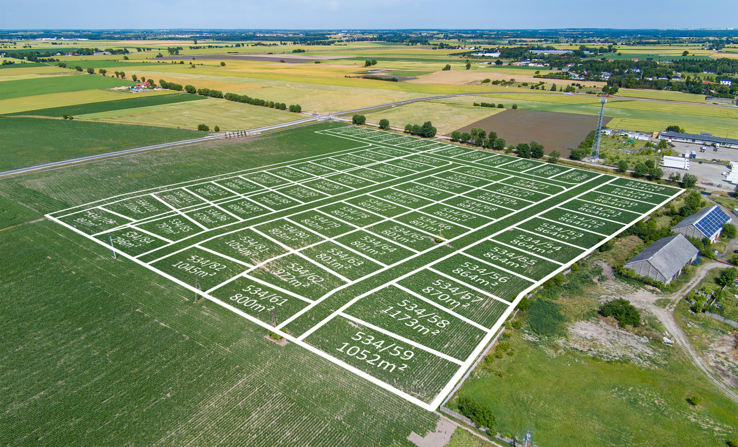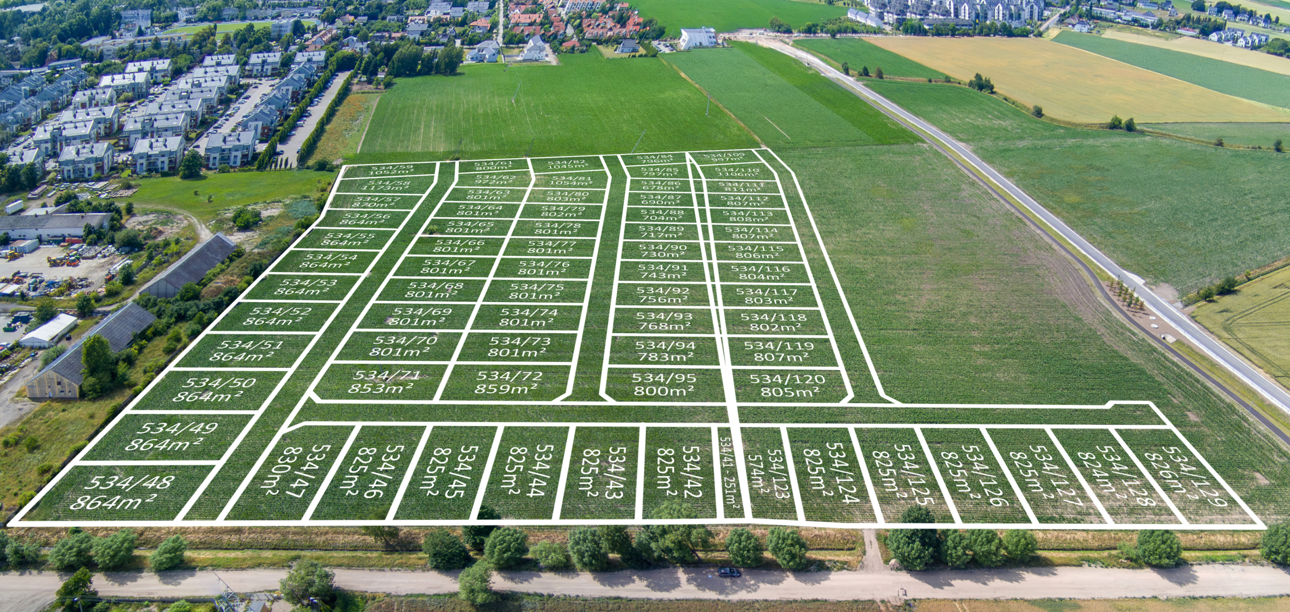 Przemyślany podział oraz pełne uzbrojenie terenu czynią ten obszar atrakcyjnym zarówno dla klientów indywidualnych, jak i inwestorówplanujących realizację kameralnego osiedla domów jednorodzinnych.