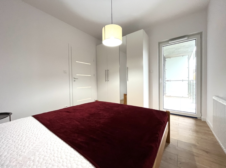 Komfortowa, z dużym łóżkiem, pojemną szafą i również z dostępem do balkonu – idealna do wypoczynku i codziennego relaksu.