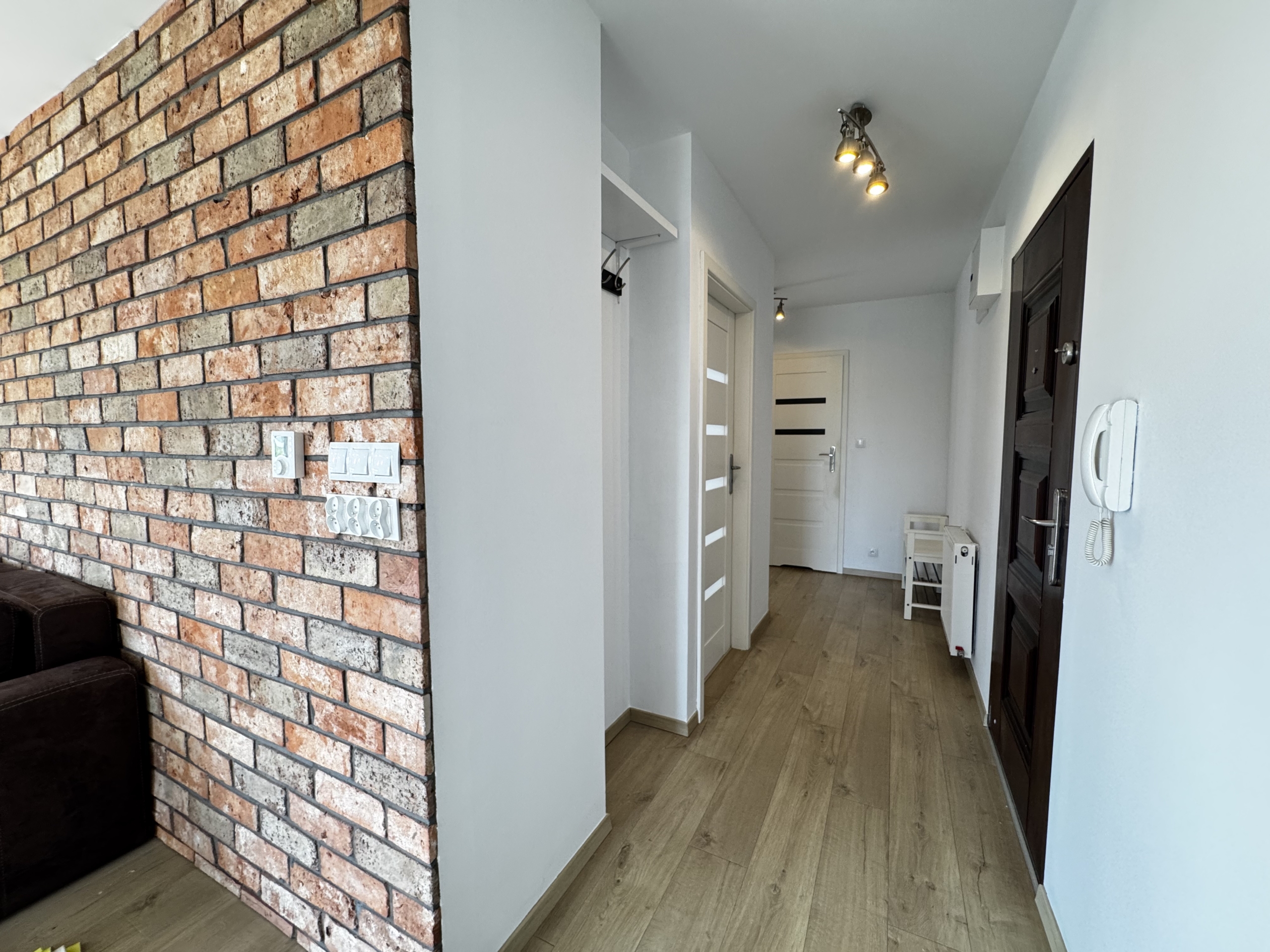 Mieszkanie sprzedawane z częścią umeblowania – m.in. kanapa, łóżko, szafa, wyposażona łazienka.