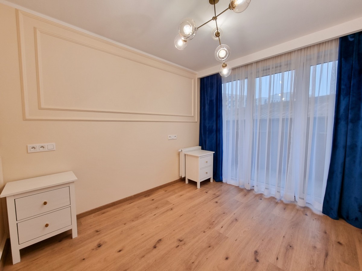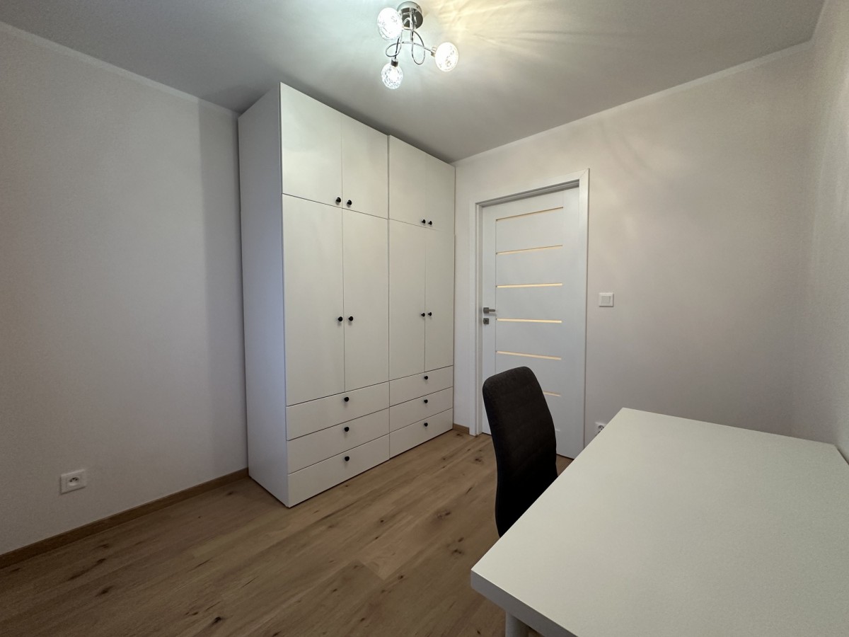 Wyposażony w rozkładaną kanapę — może pełnić rolę dodatkowej sypialni, gabinetu lub pokoju gościnnego.