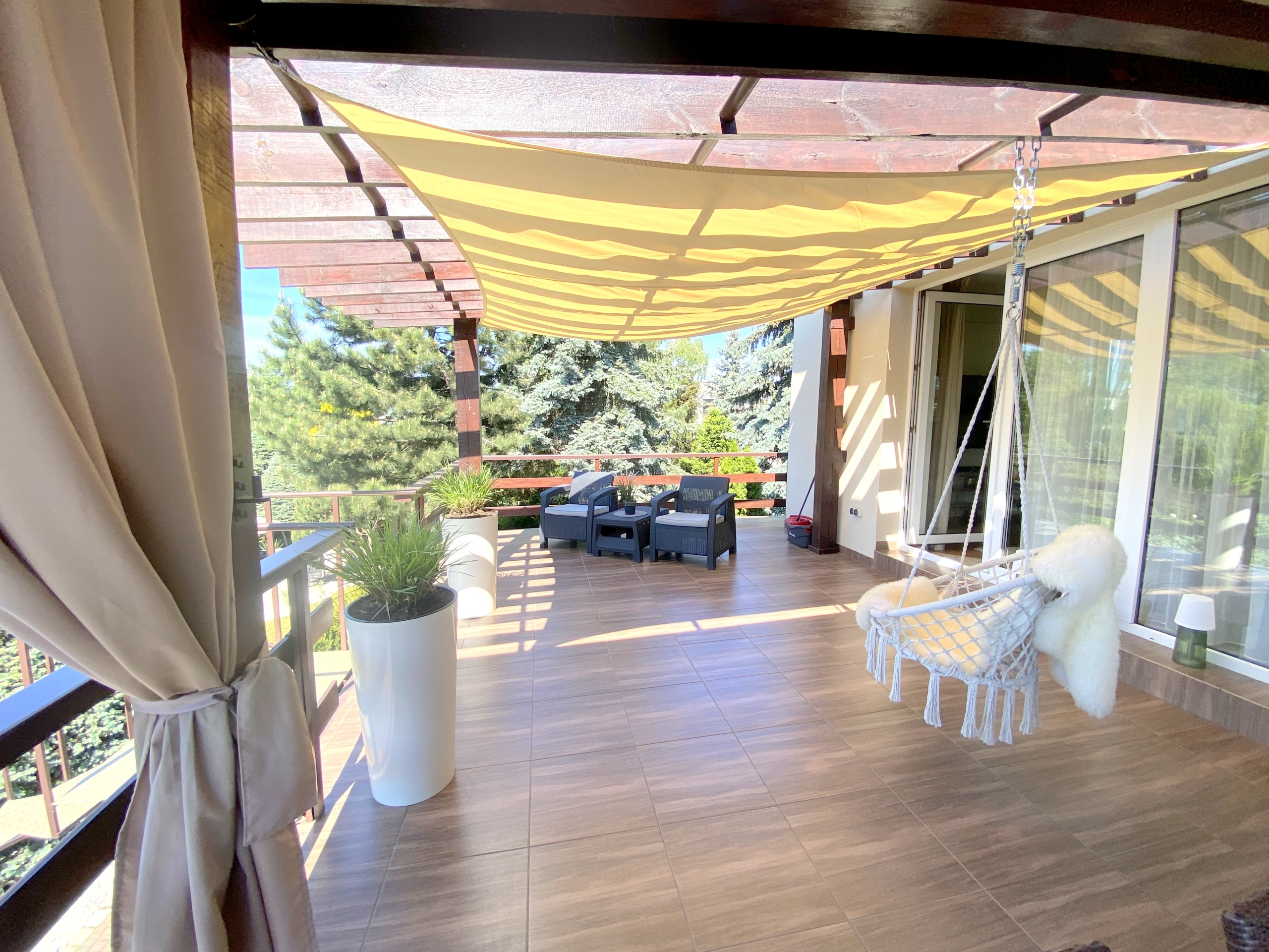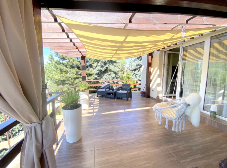 Ten piękny dom zbudowany z wysokiej jakości materiałów oferuje przestronne i jasne wnętrza, w których każdy poczuje się swobodnie. Duża ilość okien i taras na piętrze sprawiają, że w domu zawsze jest jasno i przewiewnie, a przepiękne widoki z pewnością zachwycą Twoje oczy ![]()