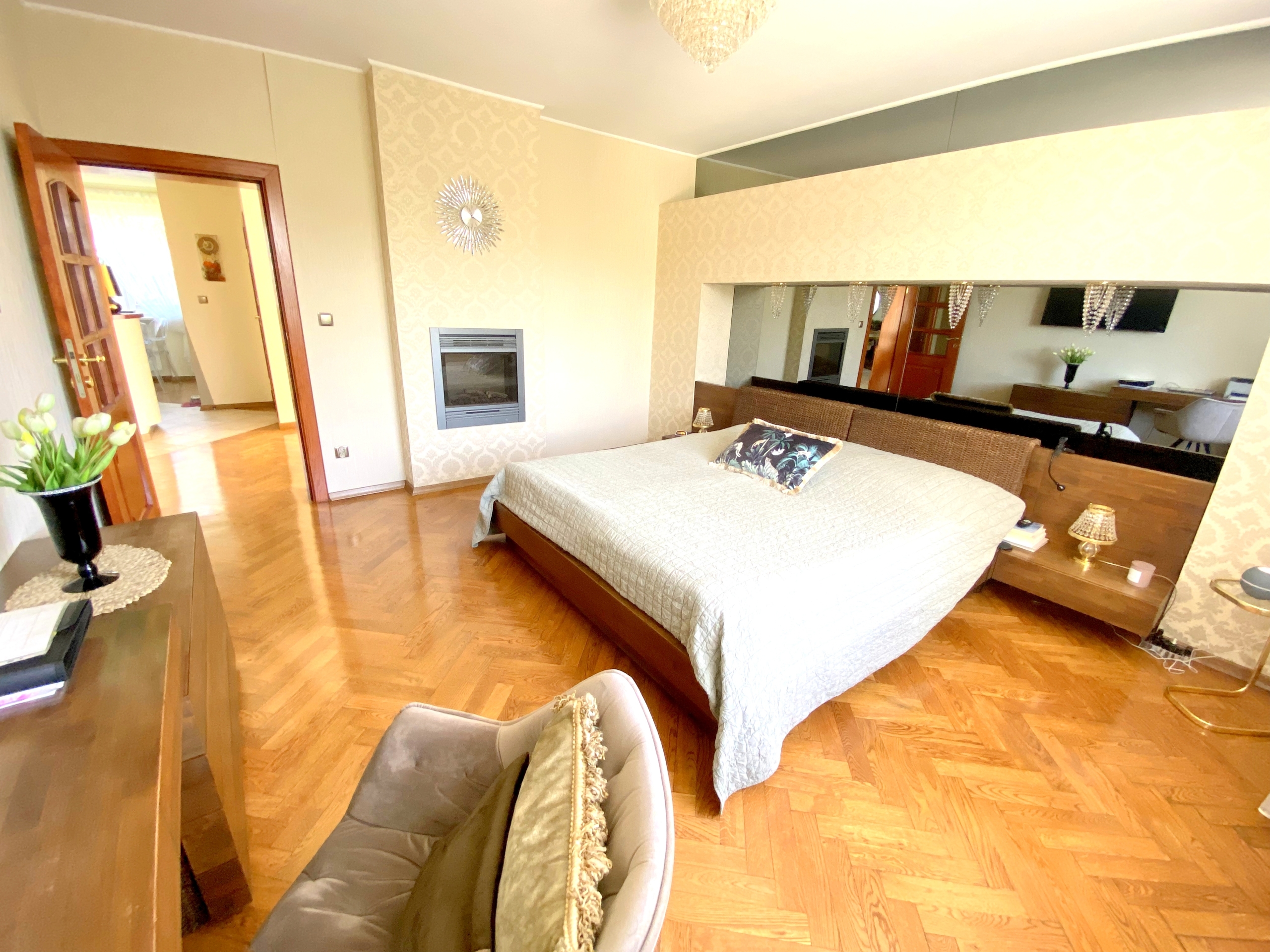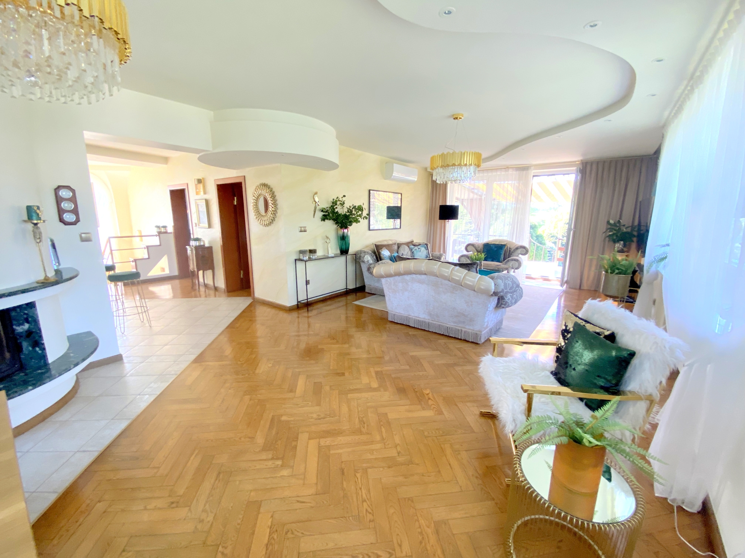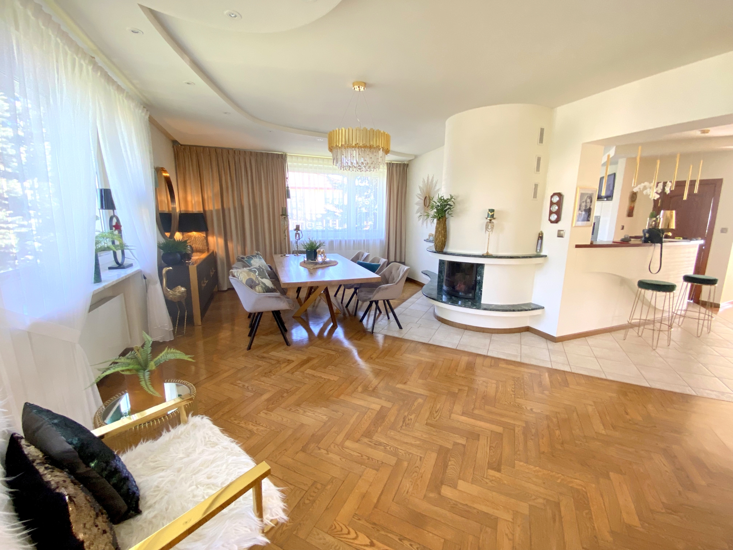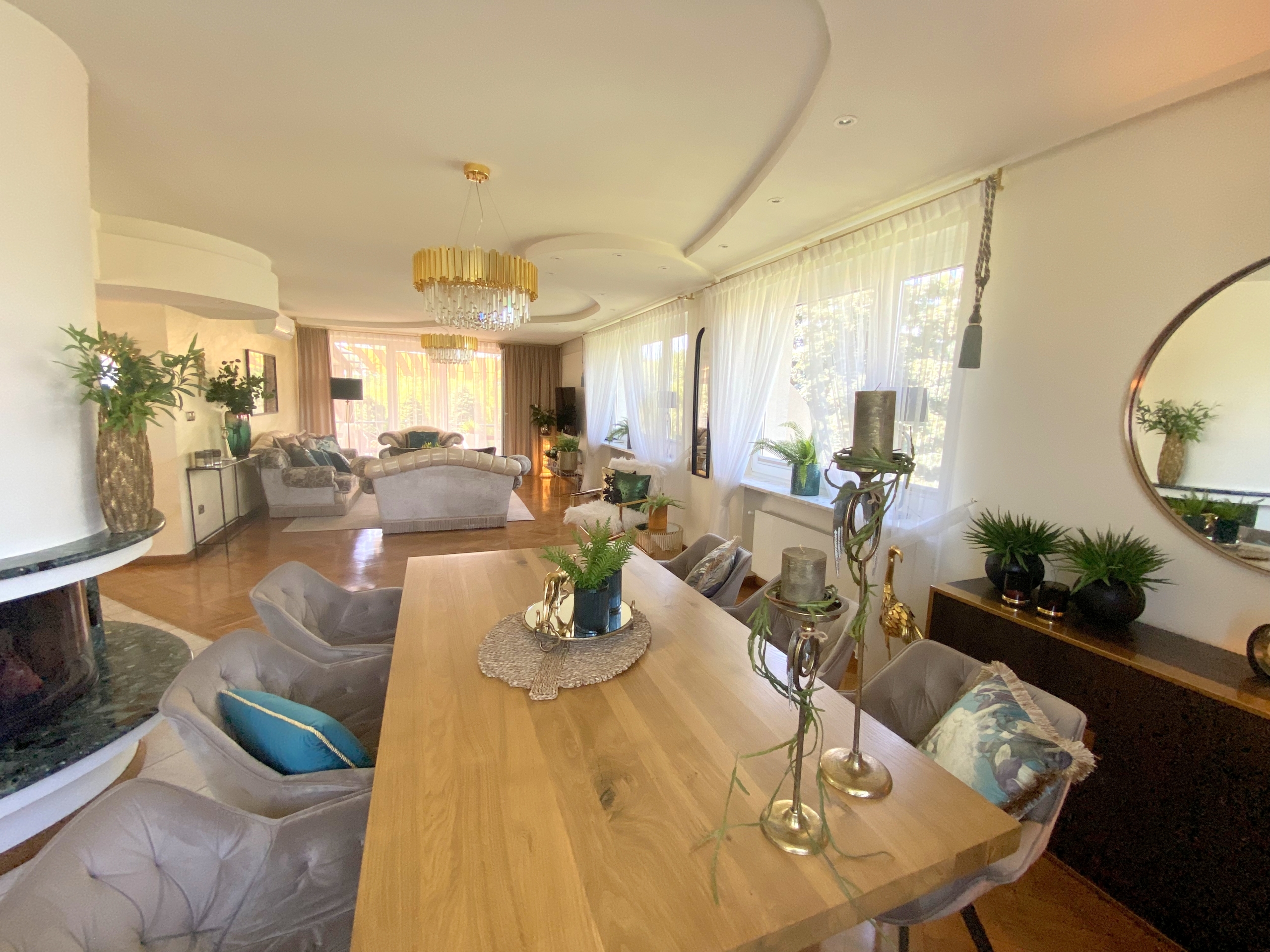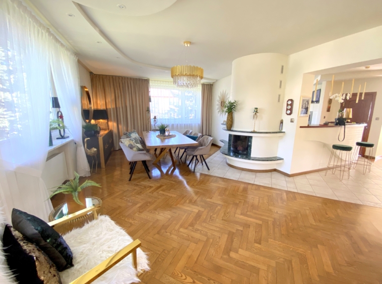 Dom o powierzchni ponad 200 m2 został wykończony z materiałów najwyższej jakości, co daje poczucie komfortu i luksusu. Wewnątrz znajdują się przestronne, jasne pokoje, duża kuchnia, salon z kominkiem, 4 sypialnie (w tym jedna z kominkiem) oraz 2 łazienki. Na posesji znajduje się także garaż oraz miejsce parkingowe dla dodatkowych samochodów ![]()