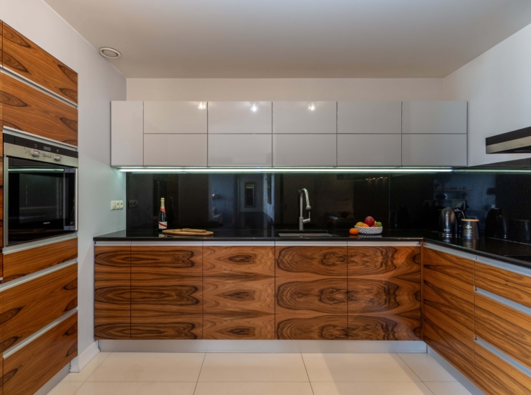 Część dzienna składa się z przestronnego, doskonale doświetlonego salonu z bezpośrednim wyjściem na taras, jadalni oraz częściowo otwartej kuchni. Dodatkowym udogodnieniem jest praktyczna spiżarnia.