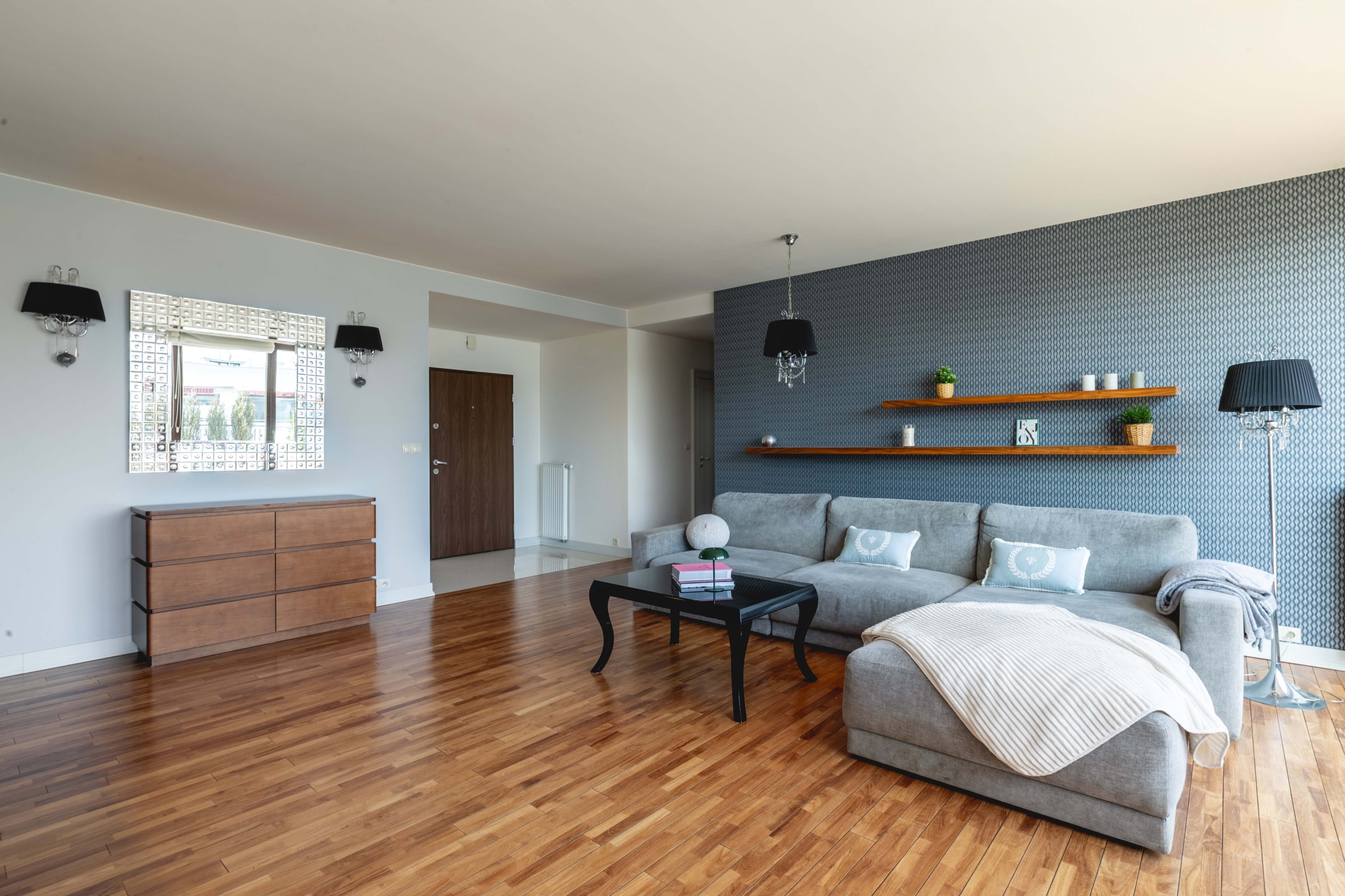 Obecnie apartament posiada dwie sypialnie oraz salon, jednak dzięki funkcjonalnemu układowi pomieszczeń istnieje możliwość wydzielenia trzeciego, a nawet czwartego pokoju, jeśli pojawi się taka potrzeba.