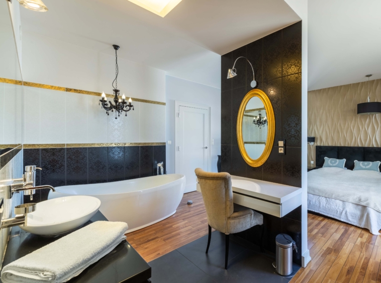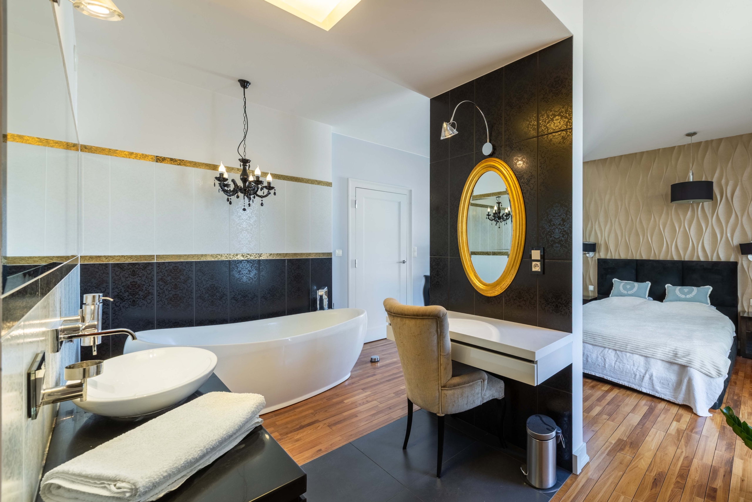 • sypialnię z prywatnym salonem kąpielowym oraz wyjściem na taras